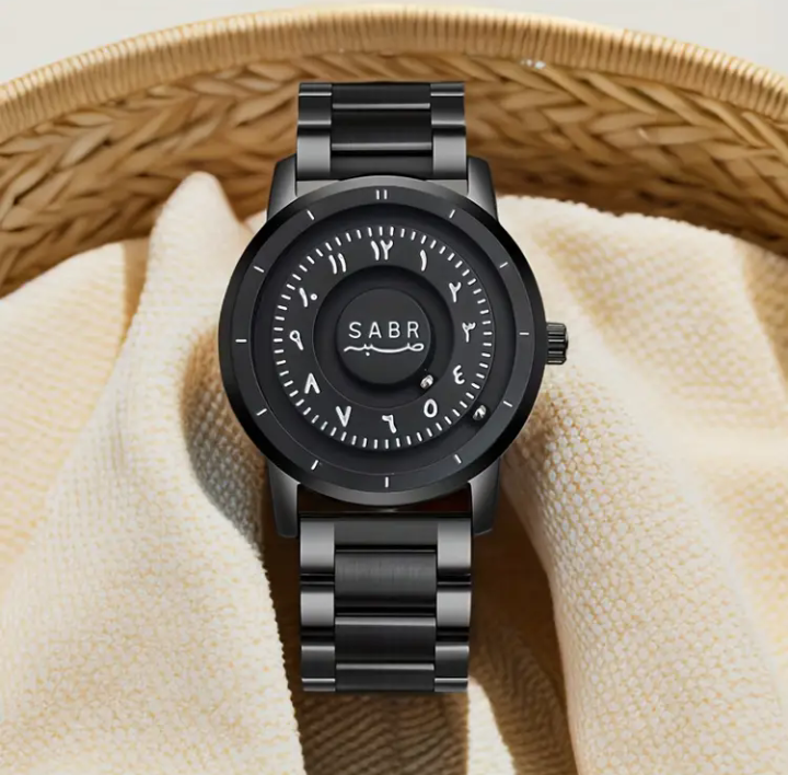 Sabr Watch aik modern Arabic-style wristwatch hai jiska dial bohot neat aur classy lagta hai. Iska strap soft hota hai aur daily use ke liye perfect feel deta hai. Watch lightweight hai, is liye poora din haath par rehne par bhi discomfort nahi hota. Yeh design aise buyers ke liye bana hai jo “simple but premium” look chahte hain.