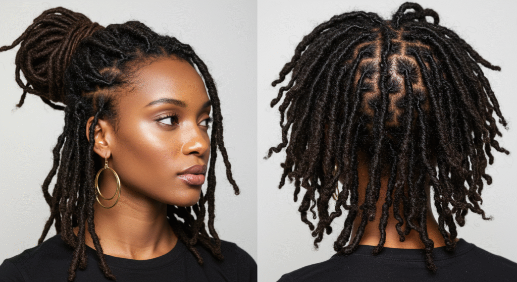 Loc styles for women often benefit from versatility, and half-up styles deliver exactly that. These adaptable looks combine the elegance of an updo with the flowing beauty of down styles. Perfect for transitioning from day to evening looks, half-up styles offer practical beauty for active lifestyles.